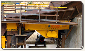 振動給料機在工作過程中可把塊狀、顆粒狀物料從貯料倉中均勻、定時、連續地送入受料裝置,在砂石生產線中可為破碎機械連續均勻地喂料,并對物料進行粗篩分。