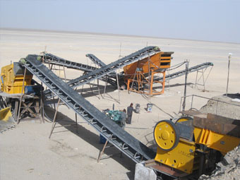 顎式破碎機破碎方式為曲動擠壓型,電動機驅動皮帶和皮帶輪,通過偏心軸使動鄂上下運動,當動鄂上升時肘板和動鄂間夾角變大,從而推動動鄂板向定鄂板接近,與此同時玄武巖被擠壓、搓、碾等多重破碎;當動鄂下行時,肘板和動鄂間夾角變小,動鄂板在拉桿、彈簧的作用下離開定鄂板,此時已破碎的玄武巖從破碎腔下口排出,隨著電動機連續轉動破碎機動鄂作周期性的壓碎和排料,實現批量生產。